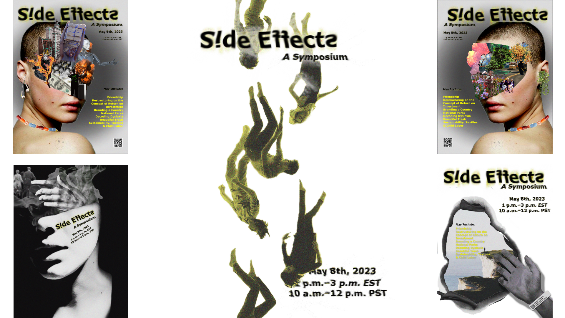 For my master's symposium branding submission, the goal was to create a versatile visual identity suitable for everyone's capstone projects. We all chose to address pressing social issues currently in the world. I perceive these issues as "side effects" of our society, hence the name I selected for the branding. Inspired by the imagery often associated with medical, environmental, and social concerns, I aimed to craft a brand that resonates with the underlying themes of these challenges. Through a thoughtful blend of typography, color palette, and imagery, the branding captures the essence of our collective efforts to shed light on societal "side effects" and propose innovative solutions.